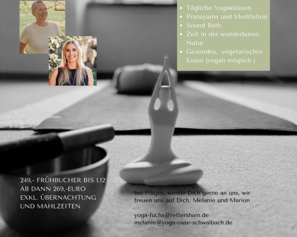 Ein Wochenende voller sanfter Energie, innerer Einkehr und nährender Gemeinschaft. Erlebe kraftvolle Yoga-Sessions, Meditation, Pranayama und eine Klangschalenzeremonie in mitten der Natur. Tauche ein in deine innere Quelle, öffne dein Herz und finde zurück zu deiner Wahrheit.